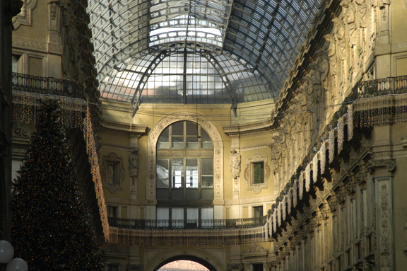 Milan is a delicious blend of old and new. Huge public building c. 1913 referencing the past in all its classical glory, but with the craftmanship of the early part of the century still intact. A reference, not a simulacra. After findign the cafes and parks I remember from last time, I had to go to the Duomo, which I'd missed last time around. Decided to use the subway system instead of walking. Emerging from underground at my destination, I was greeted by a Duomo covered with scaffolding and tarps, as if Cristo had been there. I managed to get a photo of the one portion of the building that wasn't under construction. Even more surreal, though, was a Nivea-sponsored ice-skating rink set up in the Piazza, blaring Kylie Minogue remixes. Afterward, a walk around the piazza. Four, count 'em FOUR freakin' McDonald's in a few blocks' radius. All packed to gills. There's something wrong here. And yes, it is a Royale with cheese. For 1.95 euro. A number of the older buildings to the east of the Duomo have been converted into a shopping mall, but the mosaics and glass roof from the late part of the 19th century are still intact. Fashion in Milan has taken quite the interesting turn as well. Don't know if this has caught on in the states yet, but many women are wearing knee-length shorts, tight, knee-high boots, and tights or stockings peeking out of the tiny gap between. It's a very interesting look. I like it a lot.
