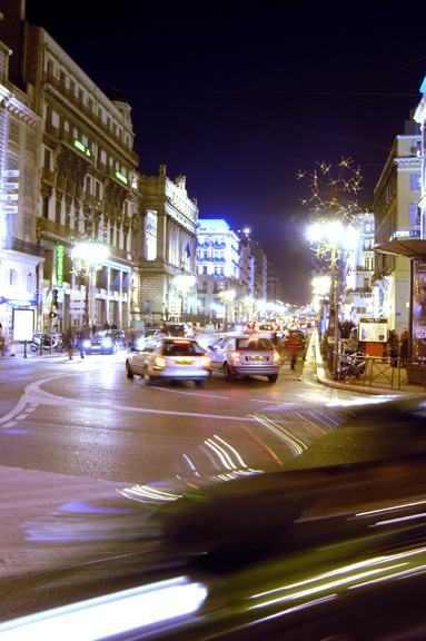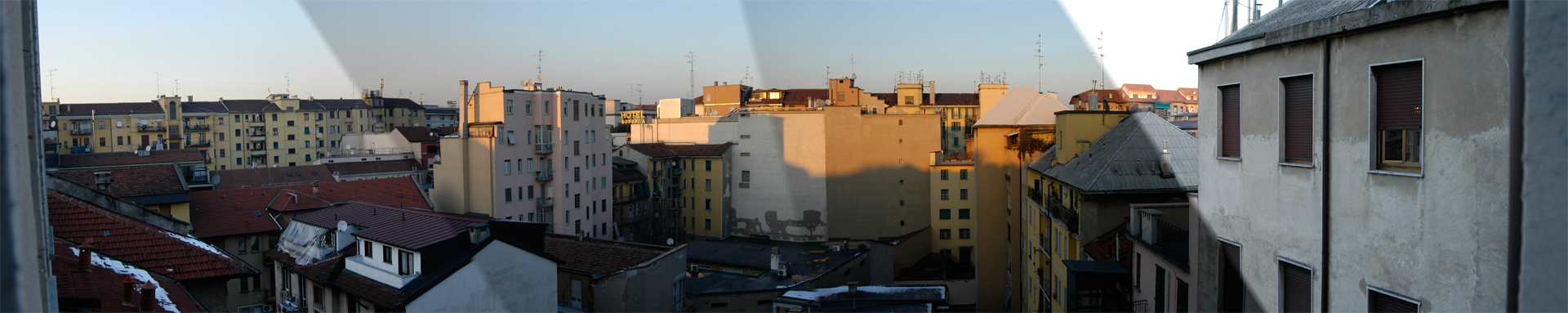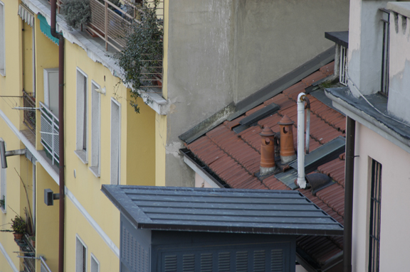 Back at the hotel, I walked to the corner cafe and tabac for lunch, a most amazing Fusilli Puttanesca with a double espresso. Then, to the park on the other side of the block to watch a 4 on 4 game of pick-up soccer on a field that was half iced over from the recent snow. After that, I stopped in the video store next to the hotel, quite intrigued and amazed with the selection of items not available in the US. That in and of itself is a reason to move to Italy. Coming out of the video store on the way back to my hotel, a really hot Asian/something woman propositioned me, "You come to my room, no?" I politely declined. I had some golden-hour views to capture from the hotel window and was losing light fast. |