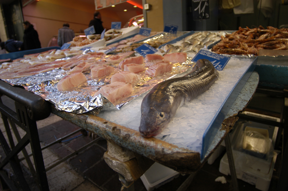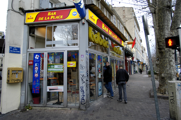 Slept like a rock last night. Went out for coffee, then walked around a bit hunting for minervois. I swear, I must have bought the last bottle of the stuff in Marseille. I've got room for a couple in my carryon, it's just a matter of finding them. Struck out, but did find something or Amy at Centre Bourse. Returned to the apartment to pack. Later in the evening, I took Franziska to dinner in appreciation for her hospitality. We chose a Lebanese restaurant (stopping in every grocery along the way tp look for Minervois, and finding only two bottles) which had an excellent menu. I had 'crevettes', which Franziska didn't know, but explaind to me as some kind of mussel. When they arrived, large, whole prawns. No worries, and when I told Franzskia 'shrimp', she said 'Oh, yes, that's what we call them in Germany.'